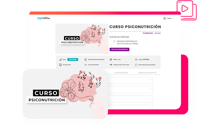 ¿POR QUÉ MEJORAR LA RELACIÓN CON LA COMIDA? Porque es necesario disfrutar de ella y dejar de verla como una enemiga. Si hasta ahora llevas cargando con una mochila pesada de intentos por mejorar tu conducta alimentaria y no lo has conseguido, te podemos ayudar. Poco a poco te irás desprendiendo de esa carga para que, finalmente, consigas disfrutar de una relación saludable con la comida. ¿ES PARA TI ESTE CURSO? ✓ Si sientes que llevas tiempo arrastrando cargas y la comida es tu refugio. ✓ Si eres de las que te prohibes alimentos o estás en una dieta constante. ✓ Si te suelen dar ingestas compulsivas muy a menudo. ✓ Si cada vez que comes algo que tú misma te has prohibido, te invade el sentimiento de culpa. ✓ Si te preocupas en exceso por lo que marca la báscula. ✓ Si estás y llevas tiempo en lucha con tu imagen corporal. ✓ Si sientes frecuentemente que no puedes parar de comer.   MÓDULOS DEL CURSO PARA APRENDER A MEJORAR TU RELACIÓN CON LA COMIDA¿Qué es para ti una alimentación saludable? La importancia de una buena nutrición y los nutrientes y sus funciones. ✓ La relación con el peso y el cuerpo. ¿De qué se compone el peso corporal? Factores que influyen en su fluctuación, las dietas y la aceptación corporal. ✓ ¿De qué tienes hambre? Sistemas de control del hambre-saciedad, diferentes tipos de hambre, hambre real VS hambre emocional y análisis funcional de los atracones. ✓ Conecta con tus emociones al comer. Creencias adoptadas alrededor de la alimentación, sistemas de recompensa y emociones que relacionamos con alimentos. ✓ Toma las riendas. Cambiando mi diálogo interno, cultivando autocompasión, gestionando emociones a través de la respiración y potenciando emociones positivas. ✓ Sana tu relación con la comida y con tu cuerpo. Autoestima y autocuidado, atendiendo a nuestras necesidades, instaurando una alimentación saludable y flexible y mindful eating. Bonus regalo ✓ Ebook completo con todo el contenido del curso ✓ Audios explicativos de cada módulo. ✓ Cuaderno de ejercicios. ✓ 2 Imprimibles Tips